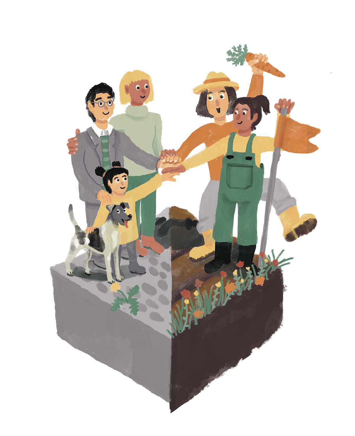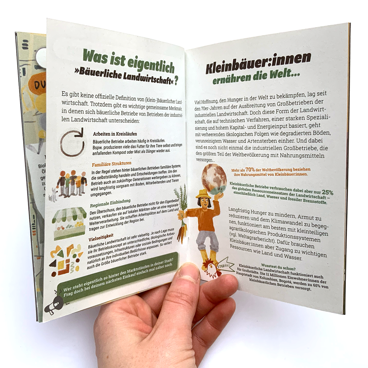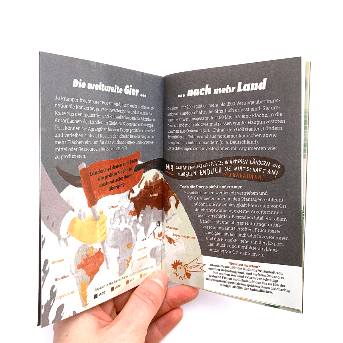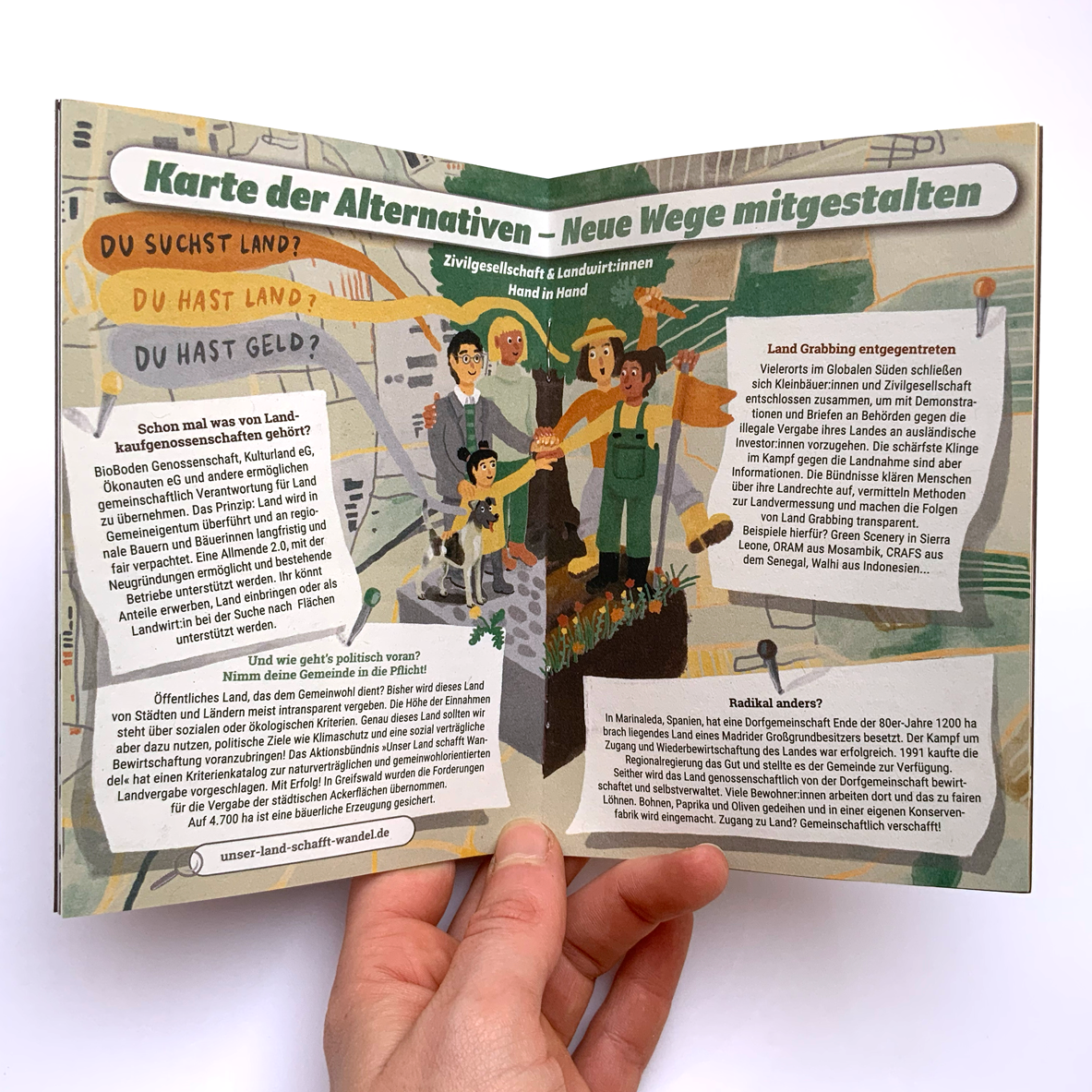 Illustration und Layout Aktionsheft für die Agrarwende 2021, Schwerpunkt-Thema: Bodenpolitik: Wem gehört der Acker? Heft bestellen?